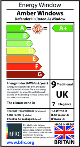 The combination of Amb-e-therm sealed glass units and a Defender window frame acheives an A+9 rated energy efficient window.
